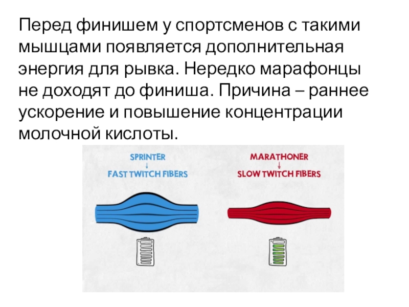 Слайд 20Перед финишем у спортсменов с такими мышцами появляется дополнительная энергия для
