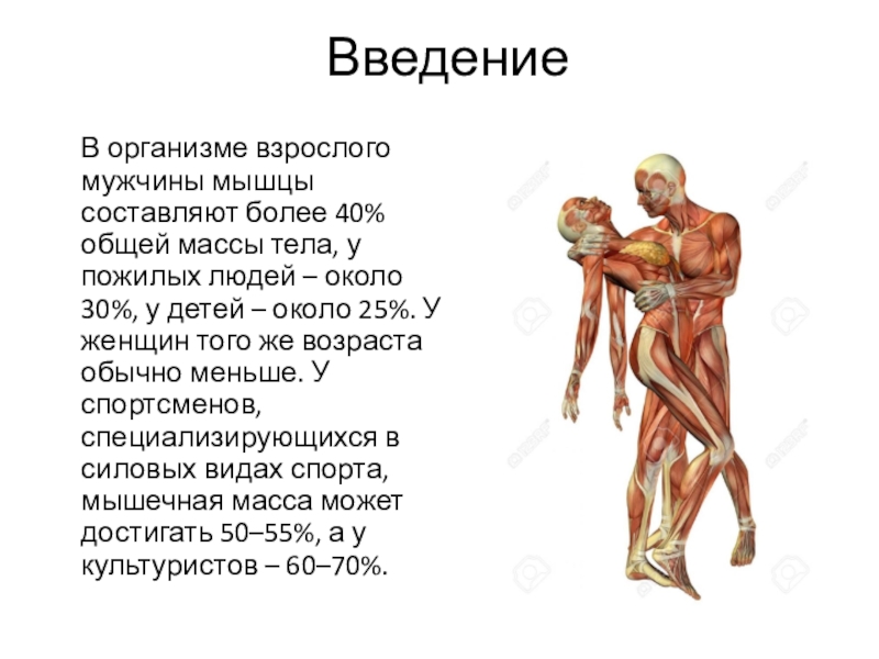 В организме взрослого мужчины мышцы составляют более 40% общей массы тела,