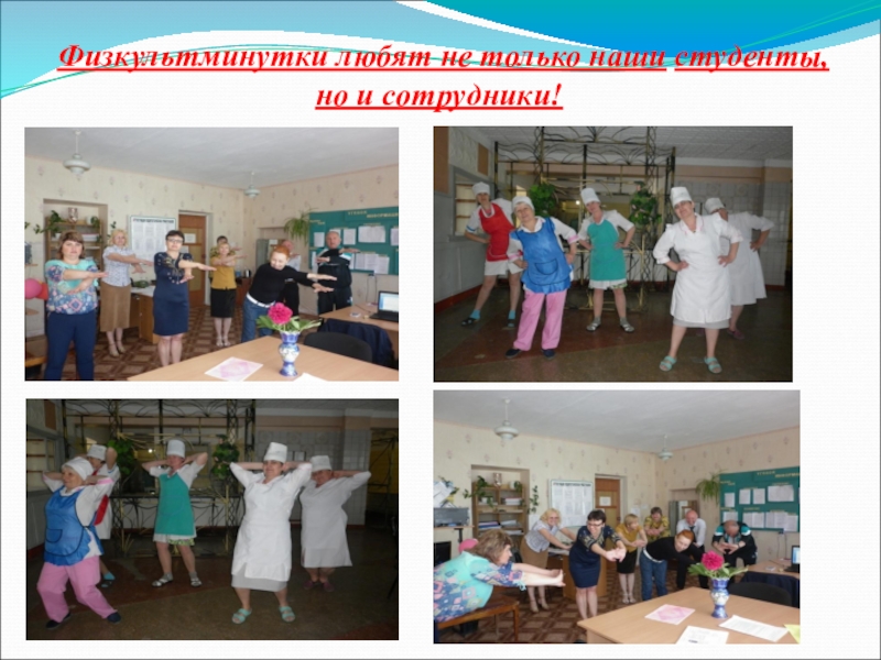 Слайд 12Физкультминутки любят не только наши студенты, но и сотрудники!