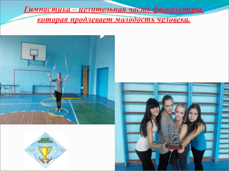 Слайд 13Гимнастика – целительная часть физкультуры, которая продлевает молодость человека.