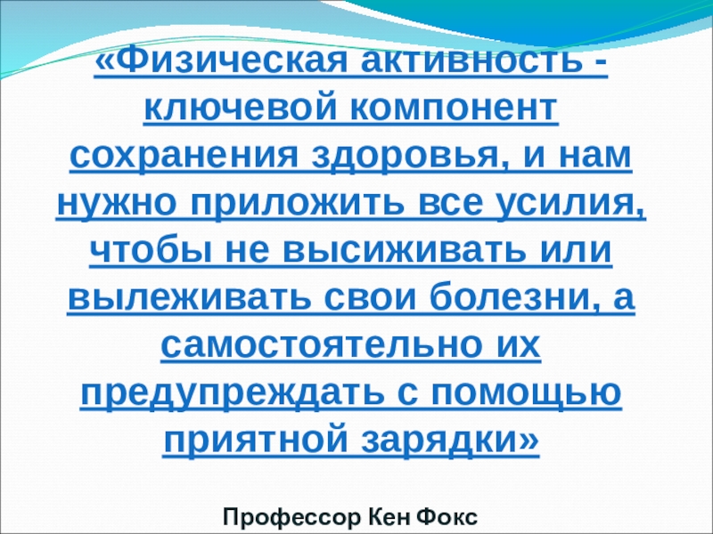 Слайд 10«Физическая активность - ключевой компонент сохранения здоровья, и нам нужно приложить