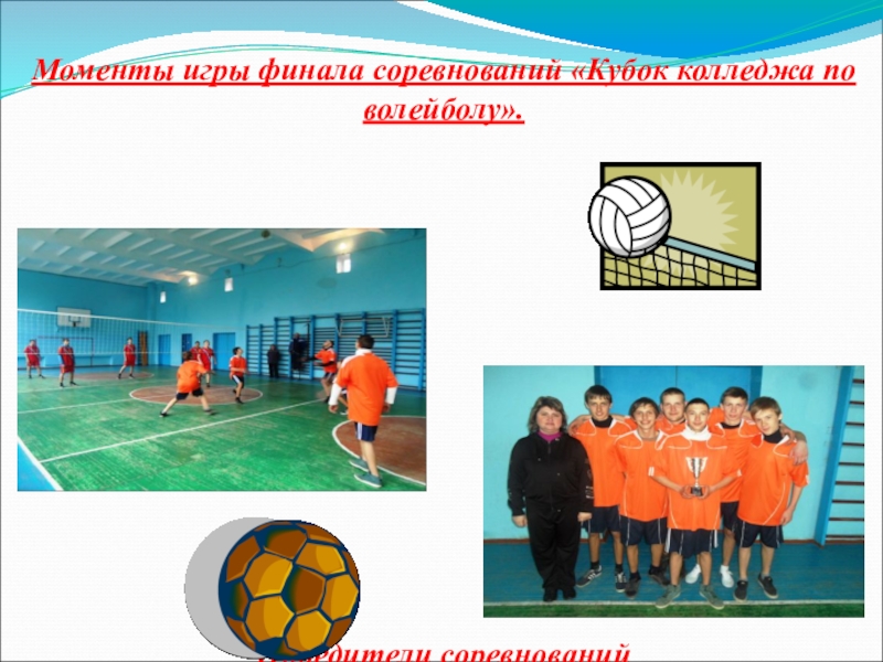 Слайд 23Моменты игры финала соревнований «Кубок колледжа по волейболу».