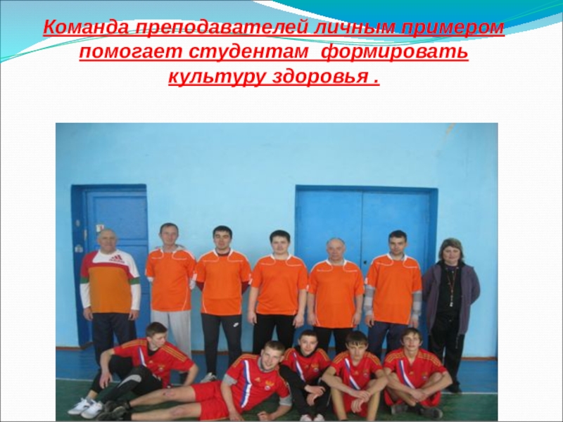 Слайд 24Команда преподавателей личным примером помогает студентам формировать культуру здоровья .