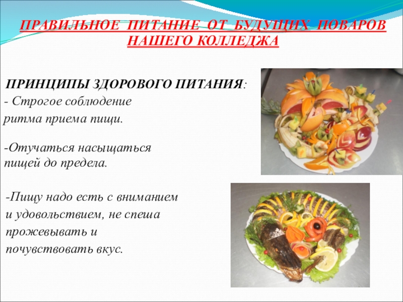 Слайд 32ПРАВИЛЬНОЕ ПИТАНИЕ ОТ БУДУЩИХ ПОВАРОВ НАШЕГО КОЛЛЕДЖА