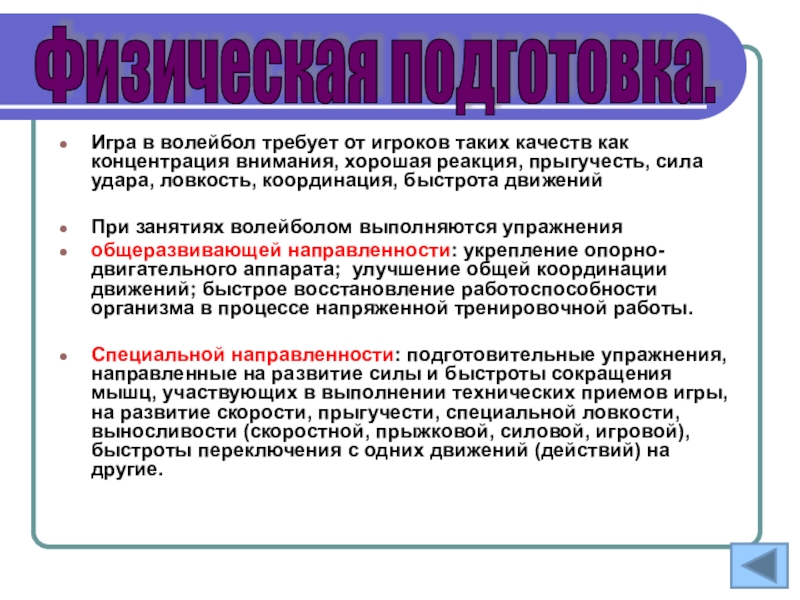 Игра в волейбол требует от игроков таких качеств как концентрация внимания,