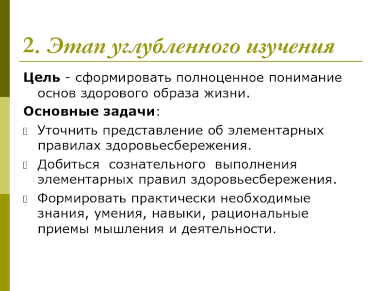 2. Формирование здорового образа жизни - так называемое «обучение здоровью».