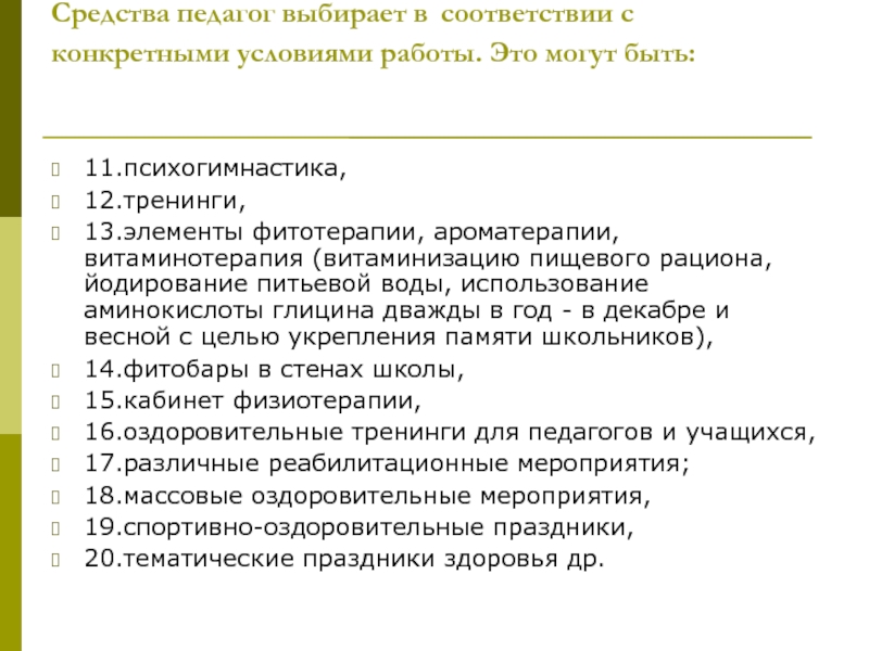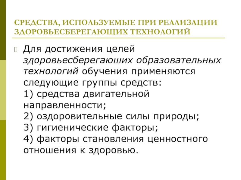 Слайд 46К гигиеническим средствам достижения целей здоровьесберегающих образовательных технологий обучения, содействующим укреплению