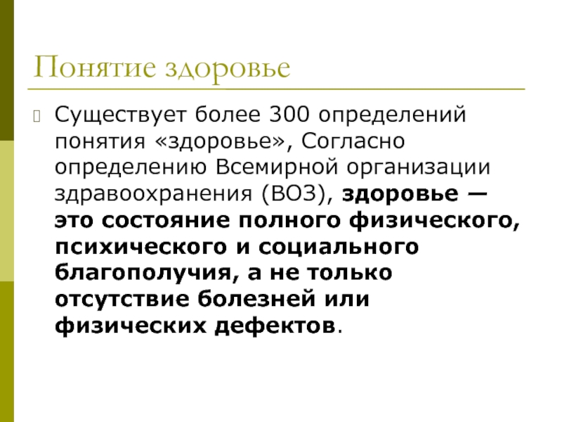Здоровье человека в понимании ВОЗ-это не просто отсутствие болезней, это