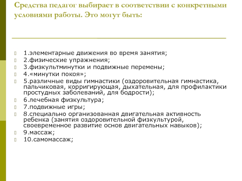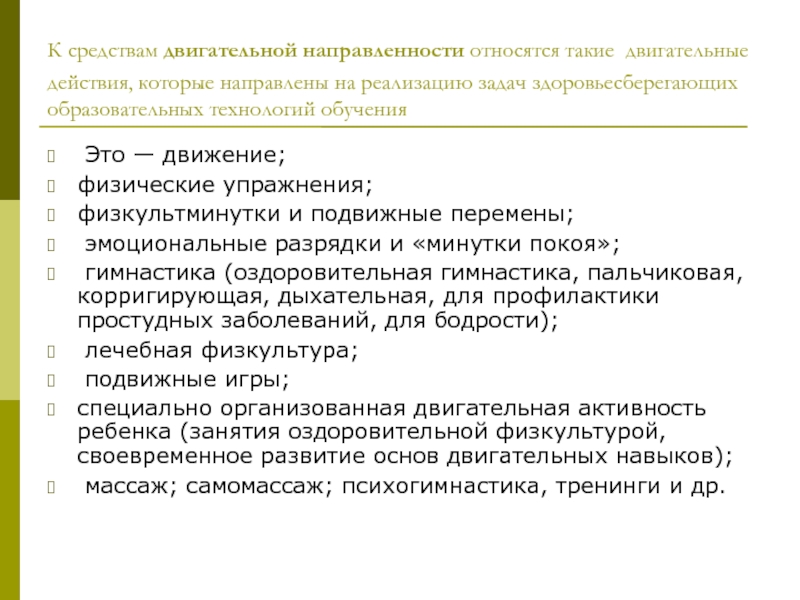 Слайд 43К средствам двигательной направленности относятся такие двигательные действия, которые направлены на