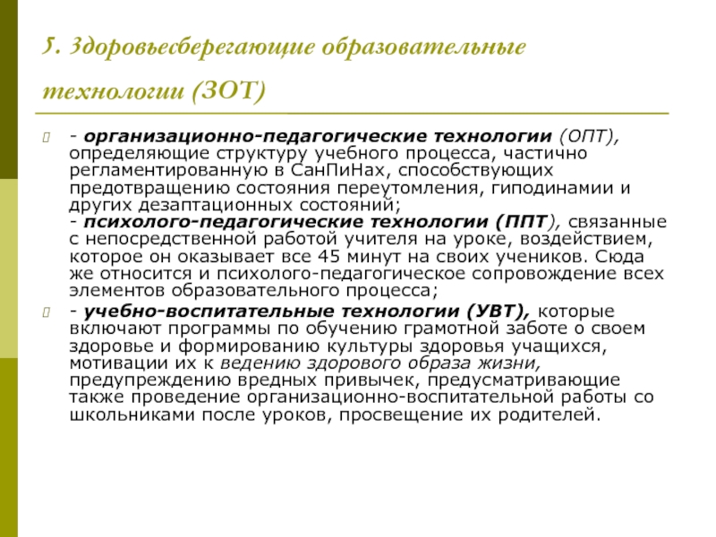 Слайд 165. 3доровьесберегающие образовательные технологии (ЗОТ)