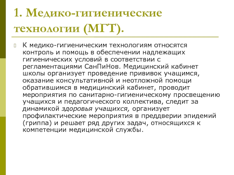 Слайд 121. Медико-гигиенические технологии (МГТ).