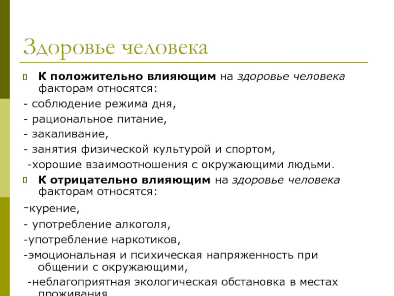 К отрицательно влияющим на здоровье человека факторам относятся: