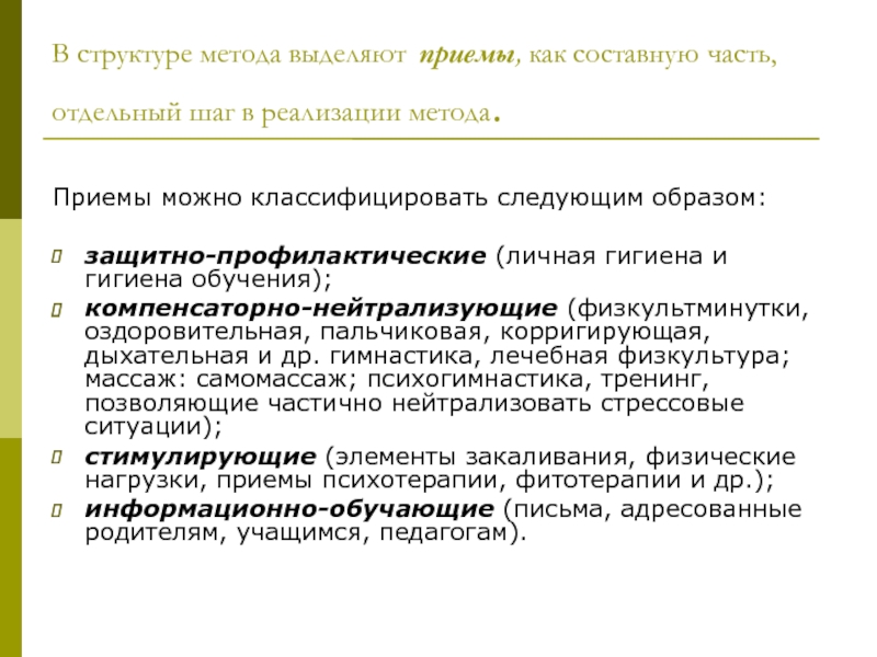 Слайд 49В структуре метода выделяют приемы, как составную часть, отдельный шаг в