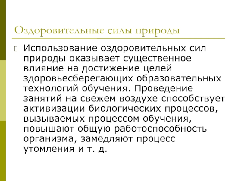 Использование оздоровительных сил природы оказывает существенное влияние на достижение