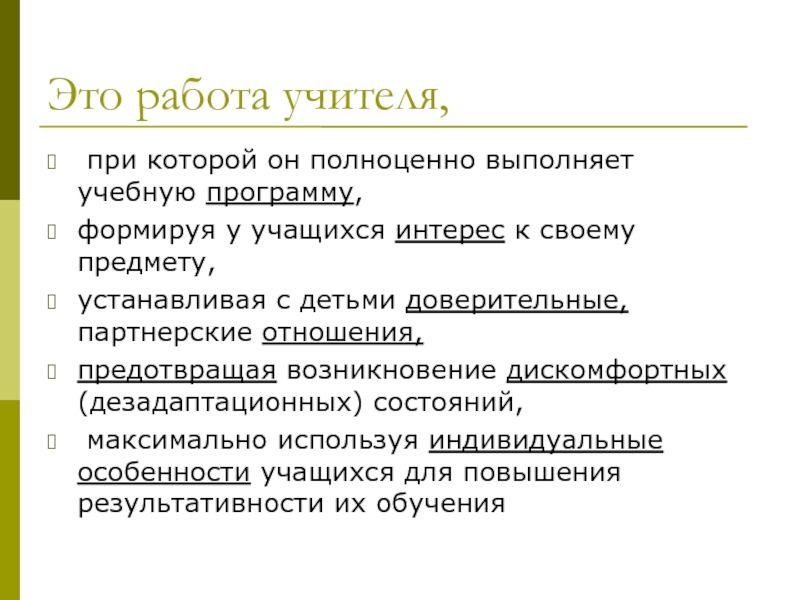 обеспечиваемый работой на уроке. От того, насколько работа каждого