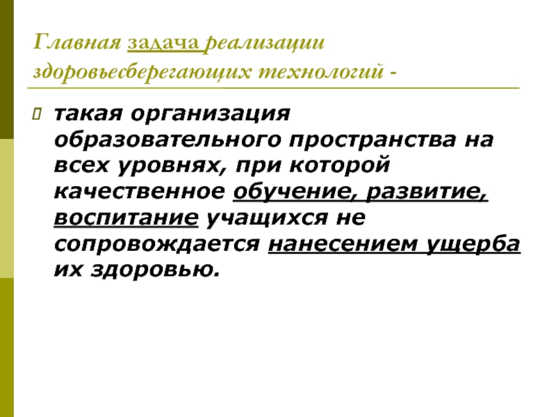 реализацию задач здоровьесберегающих образовательных технологий обучения