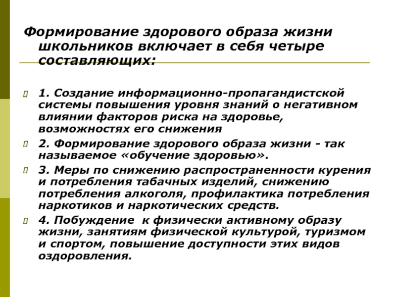 Слайд 54Формирование здорового образа жизни школьников включает в себя четыре составляющих: