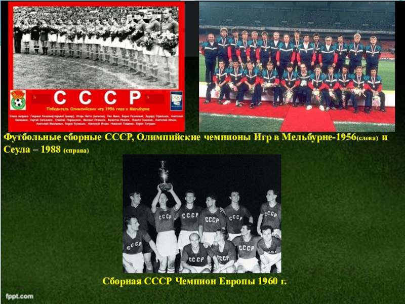 Слайд 32Футбольные сборные СССР, Олимпийские чемпионы Игр в Мельбурне-1956(слева) и Сеула –