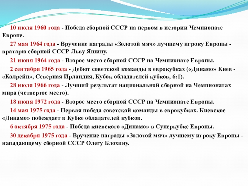РАЗВИТИЕ И УСПЕХИ ФУТБОЛИСТОВ СССР, РОССИИ, УКРАИНЫ НА ЕВРОПЕЙСКОЙ