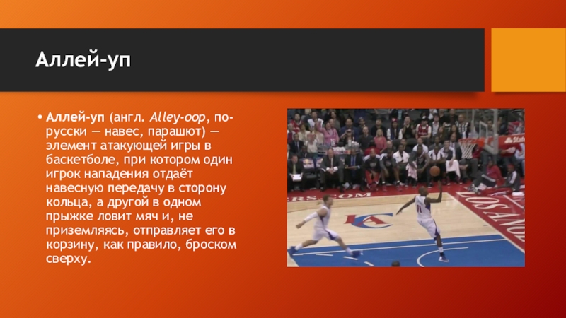 Аллей-уп (англ. Alley-oop, по-русски — навес, парашют) — элемент атакующей игры в баскетболе, при