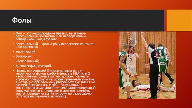 Фол — это несоблюдение правил, вызванное персональным контактом или неспортивным поведением. Виды