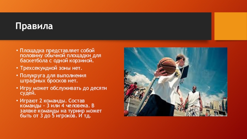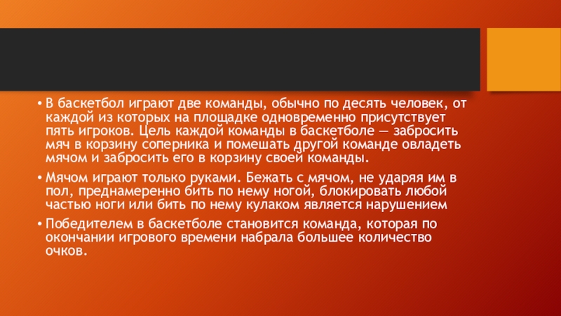 Слайд 8В баскетбол играют две команды, обычно по десять человек, от каждой