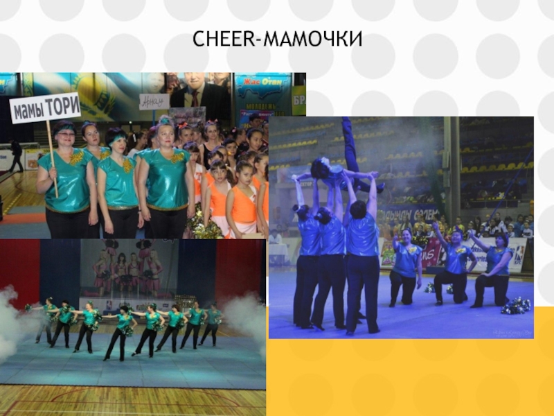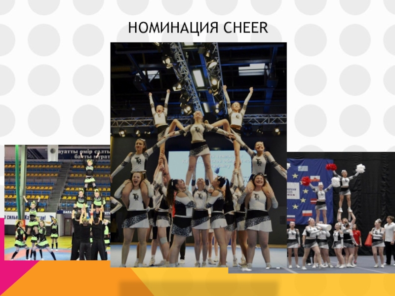 Cheer — элементы спортивной гимнастики и акробатики, построение пирамид и танцевальные перестроения под язычные кричалки.