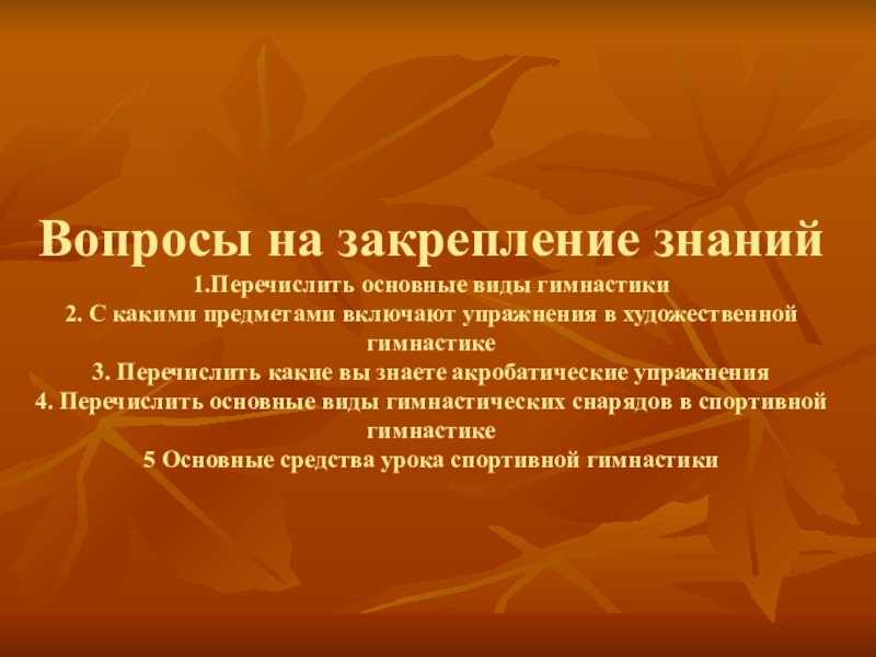 1.Перечислить основные виды гимнастики