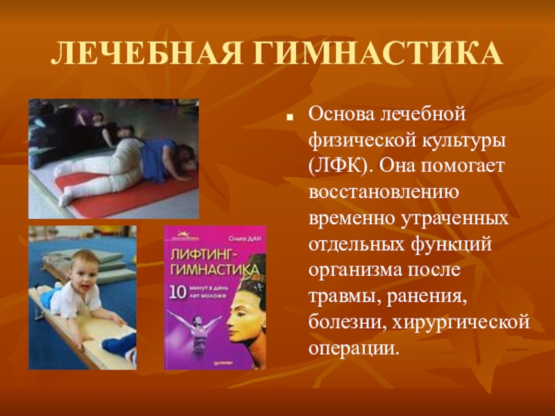 Основа лечебной физической культуры (ЛФК). Она помогает восстановлению временно утраченных