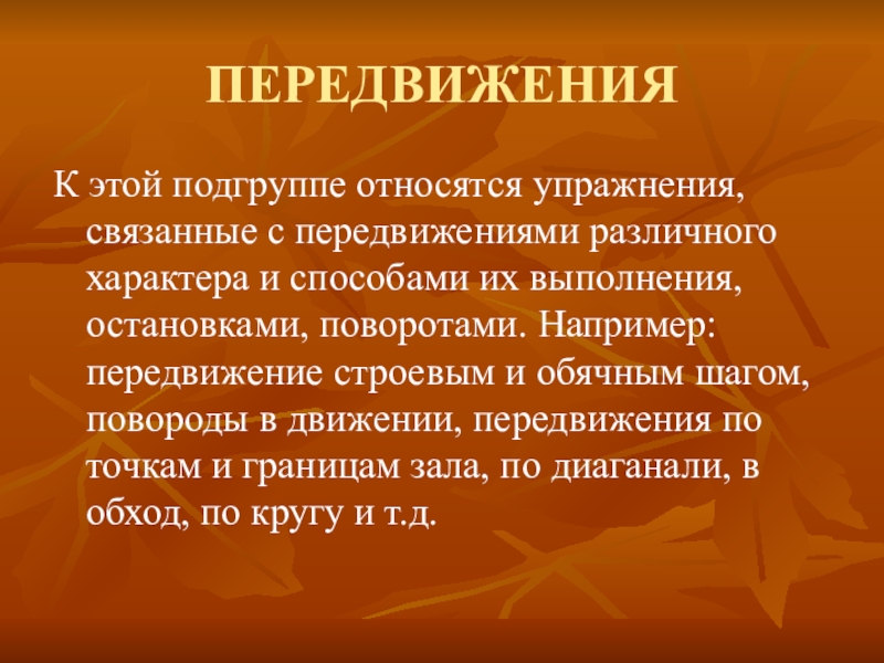 К этой подгруппе относятся упражнения, связанные с передвижениями различного характера и