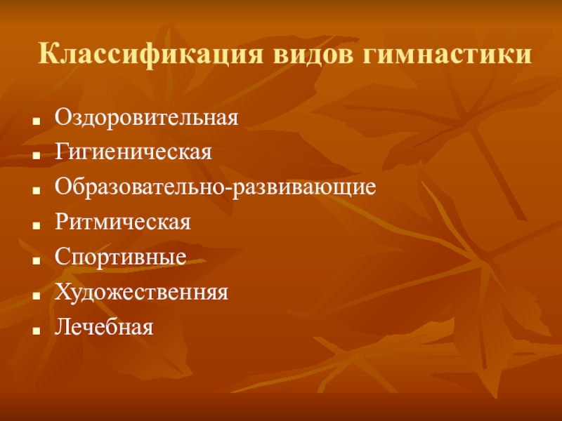 Слайд 6Классификация видов гимнастики