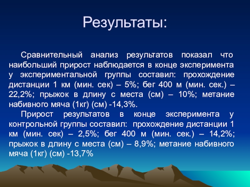 Сравнительный анализ результатов показал что наибольший прирост наблюдается в конце эксперимента