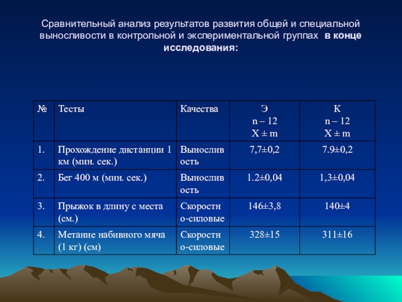 Слайд 14Сравнительный анализ результатов развития общей и специальной выносливости в контрольной и