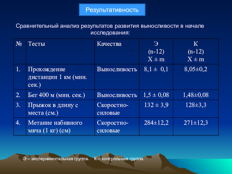 Слайд 11Сравнительный анализ результатов развития выносливости в начале исследования: