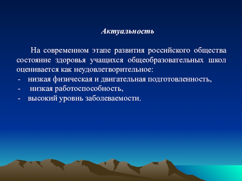 На современном этапе развития российского общества состояние здоровья учащихся общеобразовательных