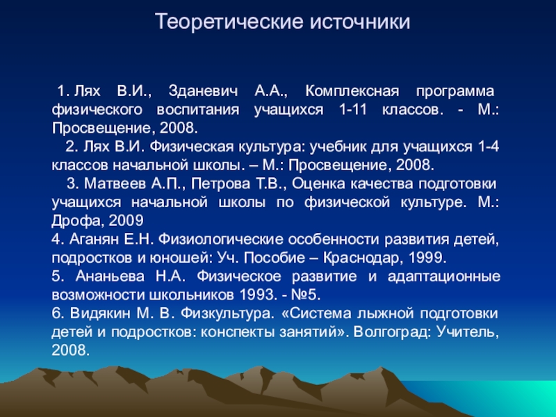 1. Лях В.И., Зданевич А.А., Комплексная программа физического воспитания учащихся 1-11