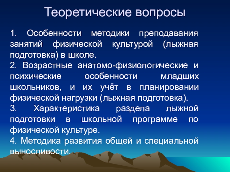 2. Возрастные анатомо-физиологические и психические особенности младших школьников, и их учёт в планировании физической нагрузки (лыжная подготовка).