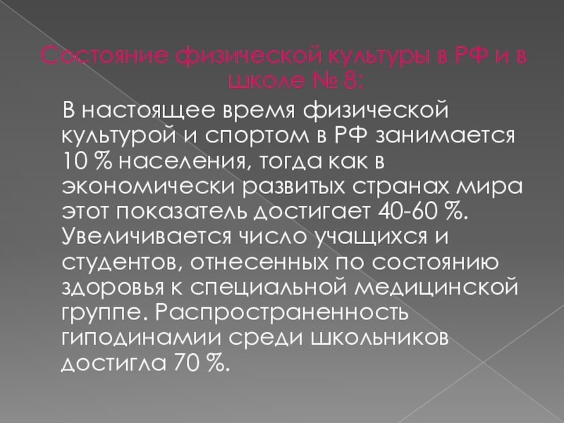 Слайд 6Состояние физической культуры в РФ и в школе № 8: