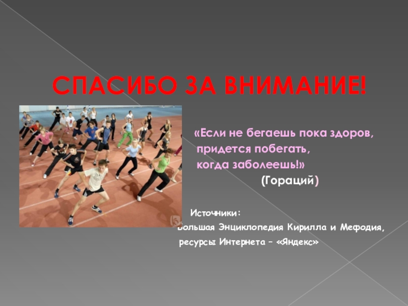 Слайд 9 Бег оказывает ещё большее влияние на организм, нежели ходьба. Он способствует