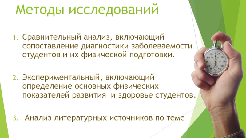 Экспериментальный, включающий определение основных физических показателей развития и здоровье студентов.