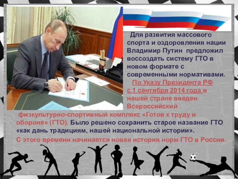 Для развития массового спорта и оздоровления нации Владимир Путин предложил воссоздать систему ГТО в новом формате с современными нормативами.