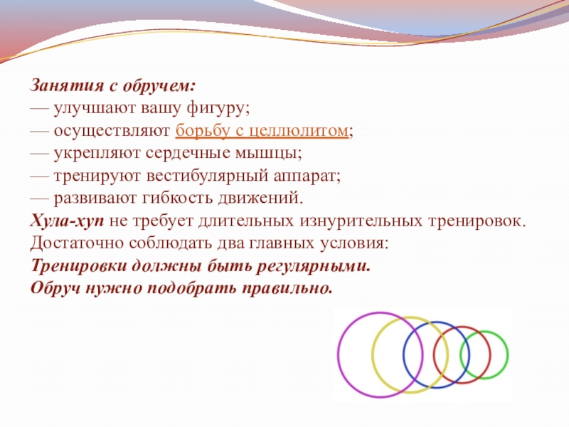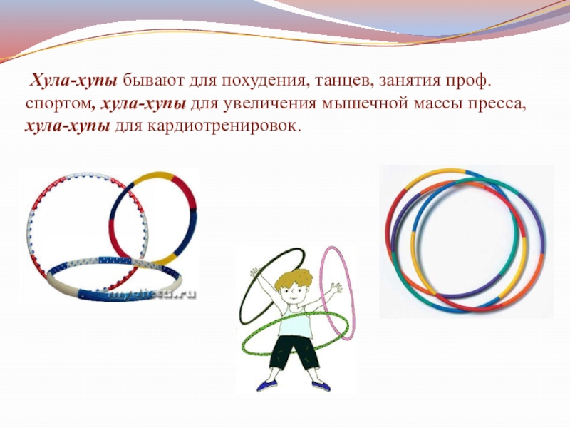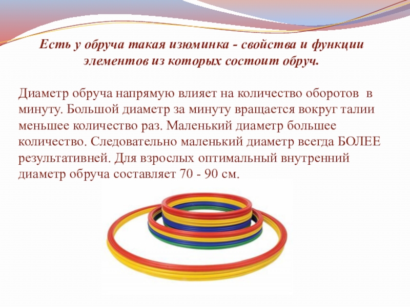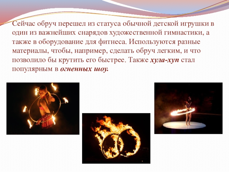 Слайд 14Сейчас обруч перешел из статуса обычной детской игрушки в один из