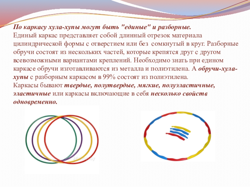 По каркасу хула-хупы могут быть "единые" и разборные.