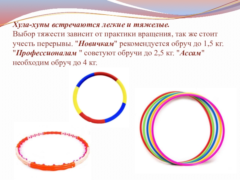 Слайд 11Хула-хупы встречаются легкие и тяжелые.
