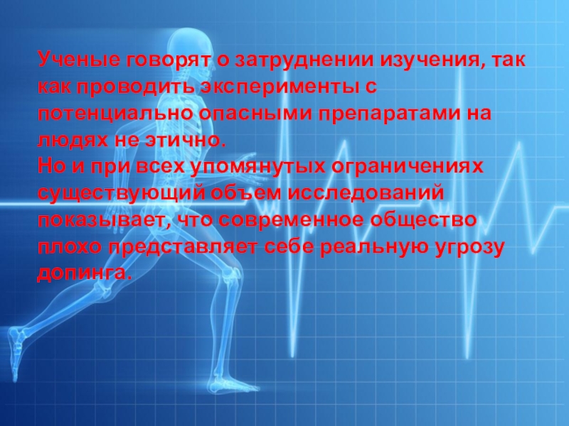 Тем более, что в отличие от большого спорта, применение запрещенных препаратов не контролирует армия врачей с совершенным диагностическим оборудованием.