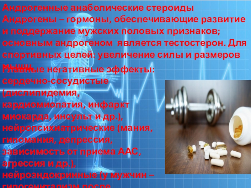 нейропсихиатрические (мания, гипомания, депрессия, зависимость от приема ААС, агрессия и др.),
