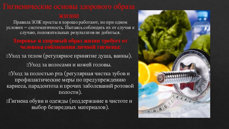 Здоровье и здоровый образ жизни требует от человека соблюдения личной гигиены: