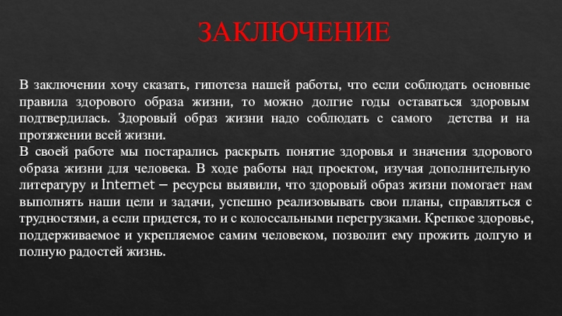В заключении хочу сказать, гипотеза нашей работы, что если соблюдать основные