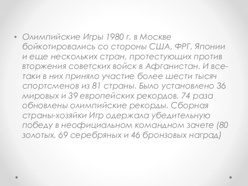 Слайд 13Олимпийские Игры 1980 г. в Москве бойкотировались со стороны США, ФРГ,