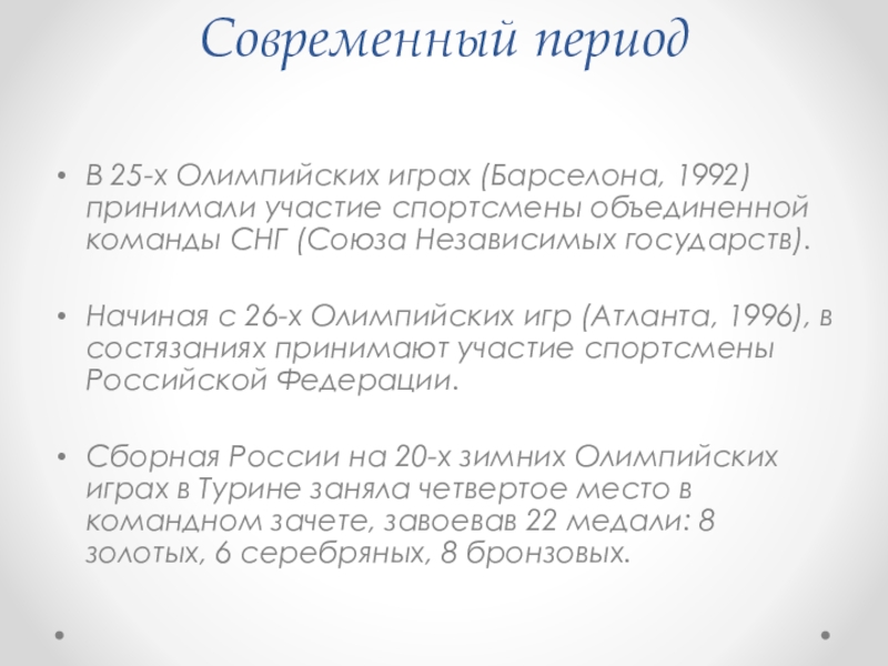 В 25-х Олимпийских играх (Барселона, 1992) принимали участие спортсмены объединенной